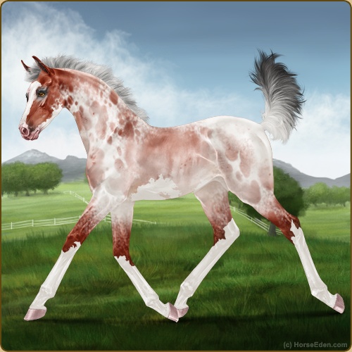 Color: Blood Bay Roan Sabino