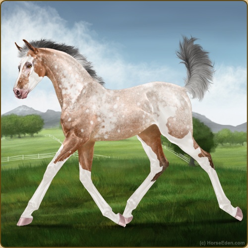 Color: Light Bay Roan Sabino Snowflake Appaloosa