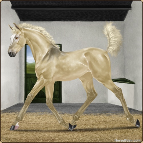I found a beautiful Mustang stallion, pretty palomino.