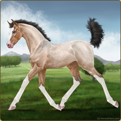 Color: Light Bay Roan Dun Sabino Snowflake Appaloosa