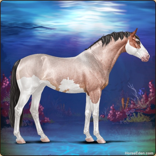 Color: Blood Bay Roan Dun Splash White Sabino