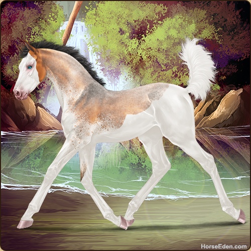 Color: Copper Bay Roan Dun Splash White Sabino