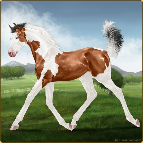 Color: Light Bay Tobiano Splash White