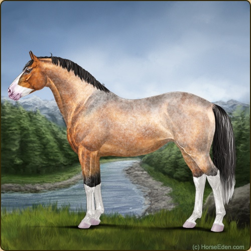 Color: Copper Bay Roan Dun Splash White