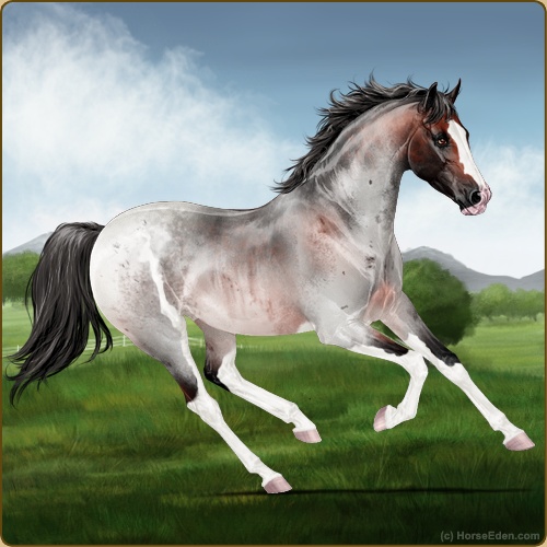 Color: Blood Bay Roan Sabino