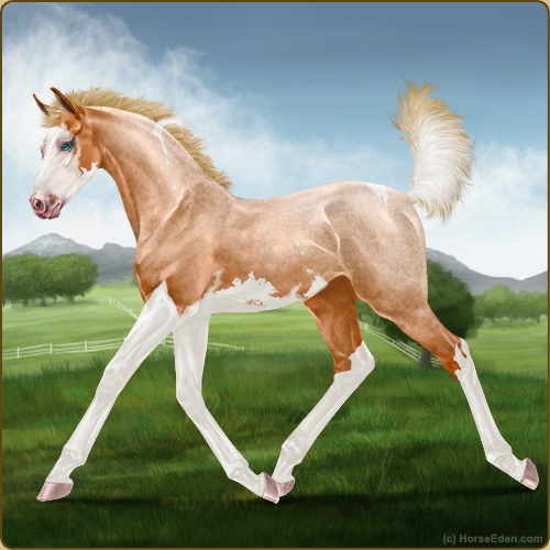 Color: Flaxen Red Roan Tobiano Splash White Sabino Varnish Appaloosa