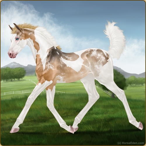 Color: Flaxen Red Dun Tobiano Splash White Sabino Rabicano