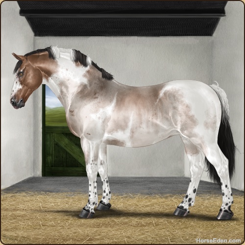 Color: Mahogany Bay Roan Dun Tobiano