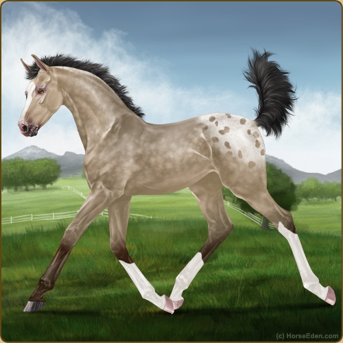 Color: Buckskin Varnish Blanket Appaloosa