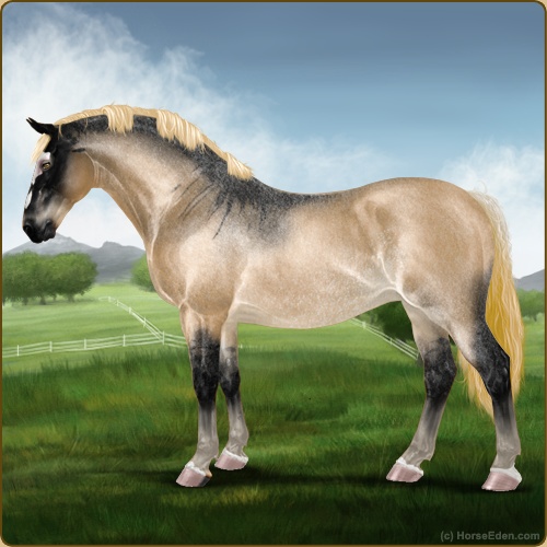 Color: Flaxen Red Roan Dun Rabicano