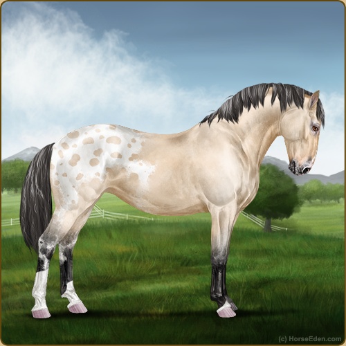 Color: Buckskin Varnish Blanket Appaloosa