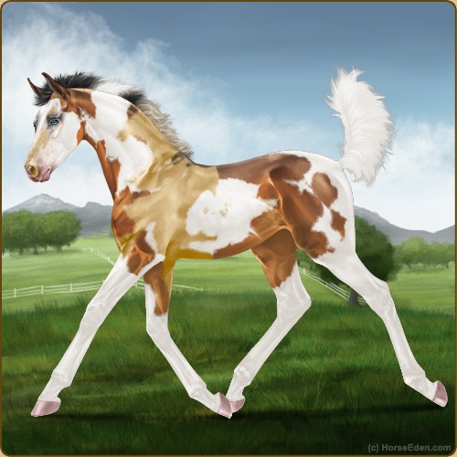 Color: Copper Bay Dun Tobiano Splash White Sabino Frame