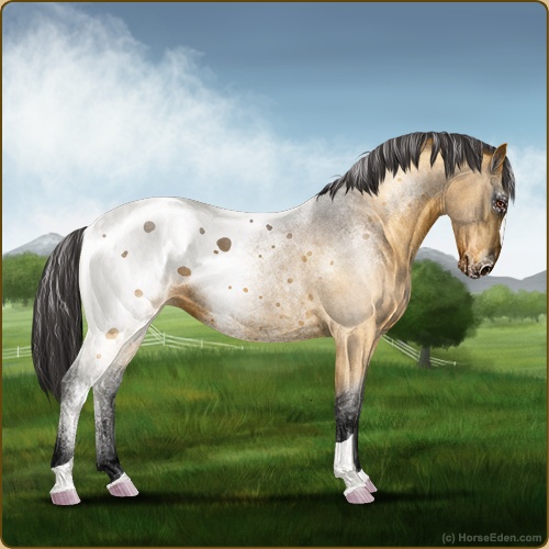 Color: Golden Bay Dun Varnish Blanket Appaloosa