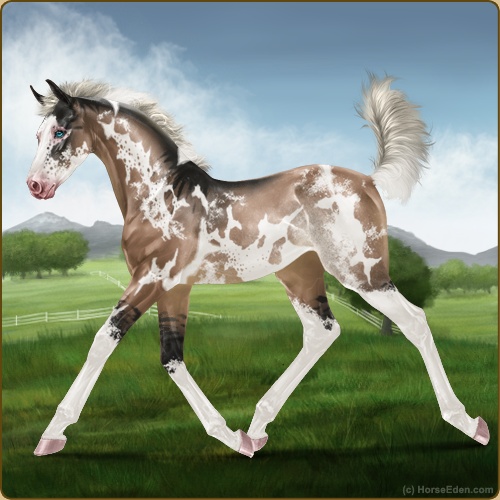 Color: Silver Mahogany Bay Dun Tobiano Splash White Sabino Rabicano Frame Appaloosa