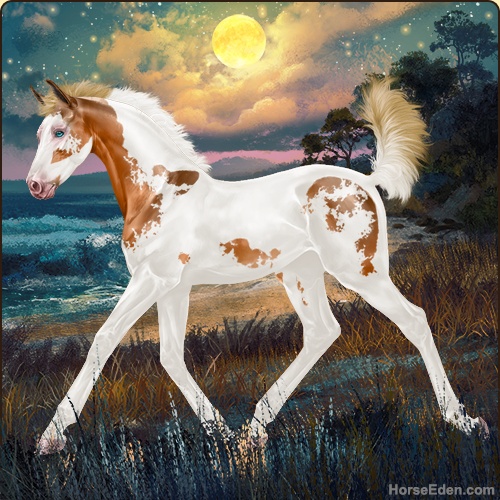 Color: Flaxen Chestnut Tobiano Sabino Frame