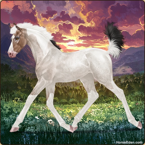 Color: Mahogany Bay Roan Dun Tobiano Splash White
