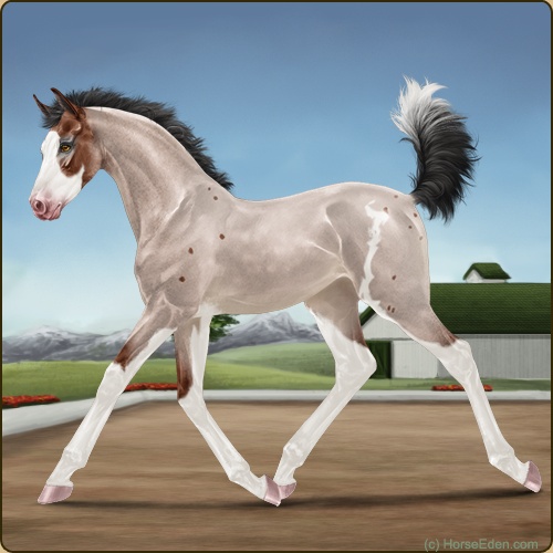 Color: Mahogany Bay Roan Splash White Sabino