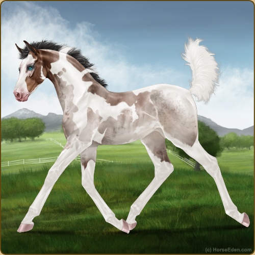 Color: Brown Roan Tobiano Splash White Sabino