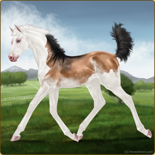Color: Light Bay Dun Splash White Sabino
