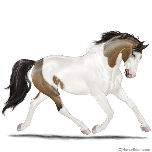 Color: Mahogany Bay Roan Dun Tobiano Splash White