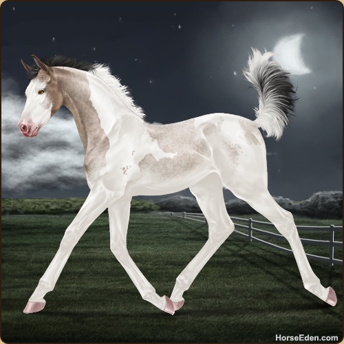 Color: Brown Roan Dun Tobiano Splash White Sabino