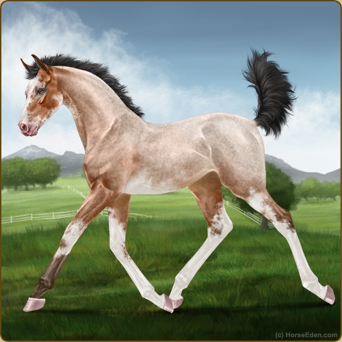 Color: Light Bay Roan Sabino Varnish Appaloosa