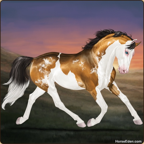 Color: Golden Bay Dun Splash White Sabino