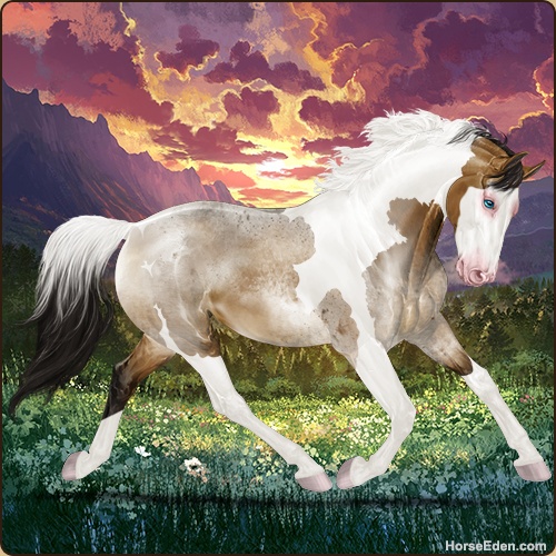 Color: Mahogany Bay Roan Dun Tobiano Splash White