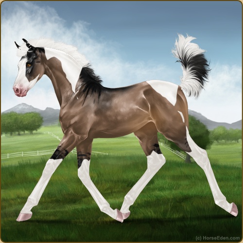 Color: Brown Dun Tobiano Splash White