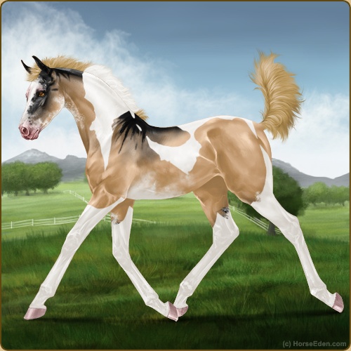 Color: Flaxen Red Dun Tobiano Sabino