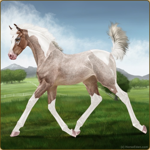 Color: Silver Mahogany Bay Roan Tobiano Sabino