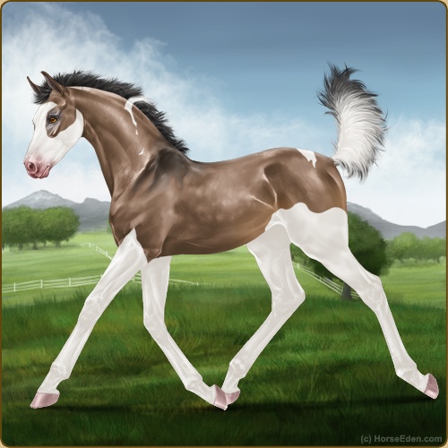 Color: Brown Dun Tobiano Splash White