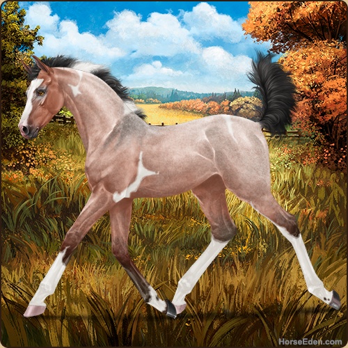 Color: Blood Bay Roan Dun Tobiano