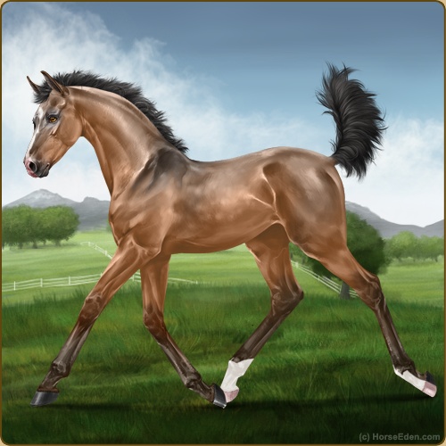 Irl I got a new horse! He is a dark palomino. He's a Missouri Fox Trotter, purebred. He has really good show lines. His name is Rapidan (Rap-ih-dan) He's 15.3 hands. Supposedly he won't spook at anything, so he’ll be a good ride… He’s 21.