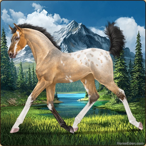 Color: Golden Bay Roan Dun Sabino Varnish Blanket Appaloosa