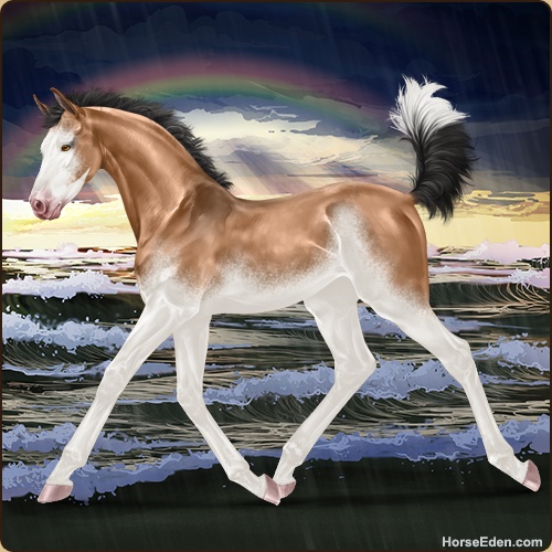 Color: Light Bay Dun Splash White Sabino
