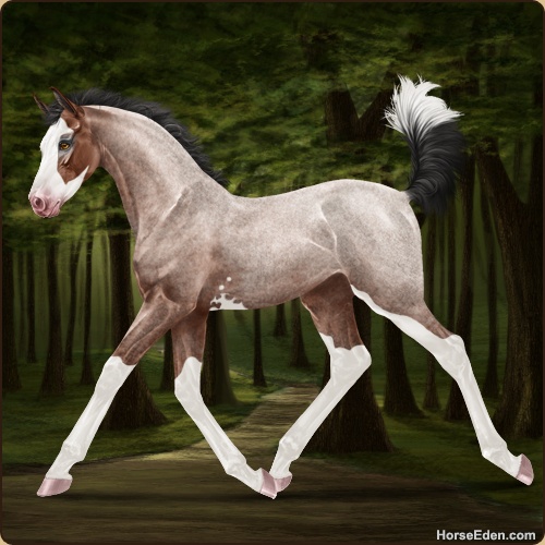 Color: Mahogany Bay Roan Splash White Sabino