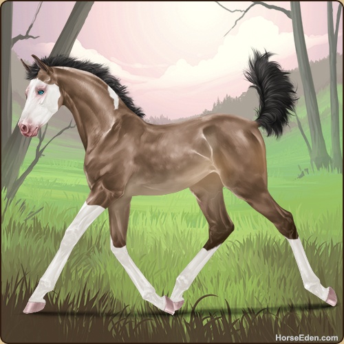 Color: Brown Buckskin Tobiano Splash White