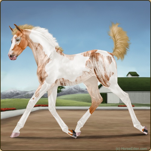 Color: Flaxen Red Roan Tobiano Brindle
