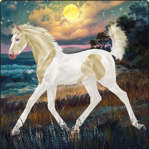 Color: Silver Amber Creme Pearl Tobiano Sabino