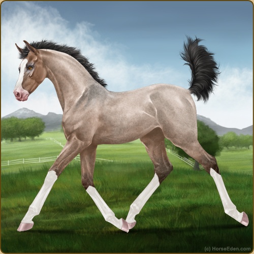Color: Mahogany Bay Roan Dun Sabino