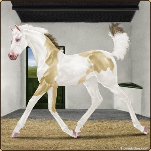 Color: Amber Champagne Tobiano Splash White