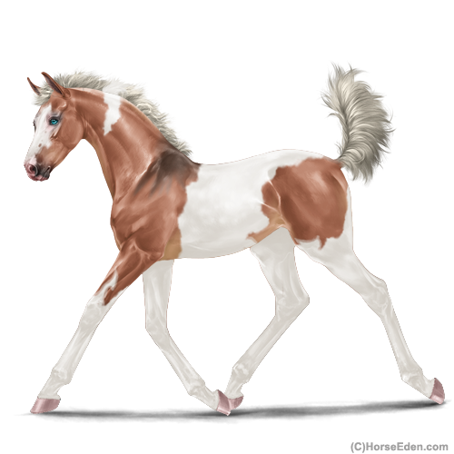Color: Silver Blood Bay Dun Tobiano Splash White
