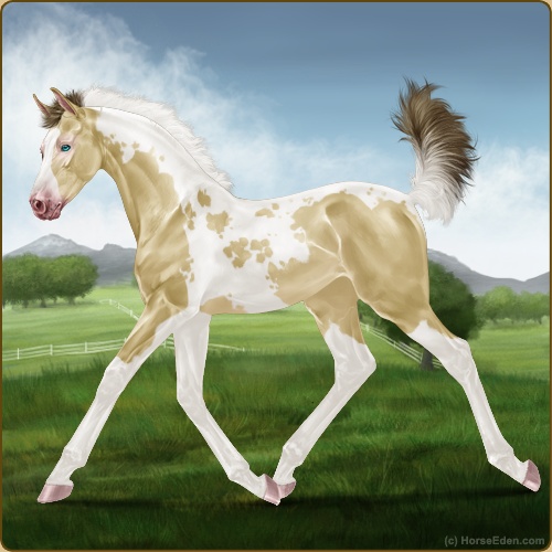 Color: Amber Champagne Tobiano Splash White Sabino