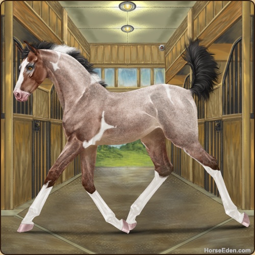 Color: Mahogany Bay Roan Tobiano Splash White
