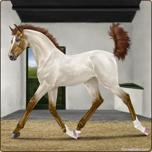 Irl I got a new horse! He is a dark palomino. He's a Missouri Fox Trotter, purebred. He has really good show lines. His name is Rapidan (Rap-ih-dan) He's 15.3 hands. Supposedly he won't spook at anything, so he’ll be a good ride… He’s 21.