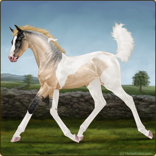 Color: Flaxen Red Roan Dun Tobiano