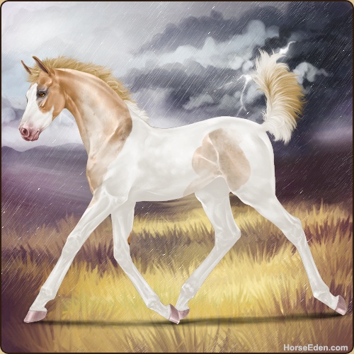 Color: Flaxen Red Roan Dun Tobiano Splash White