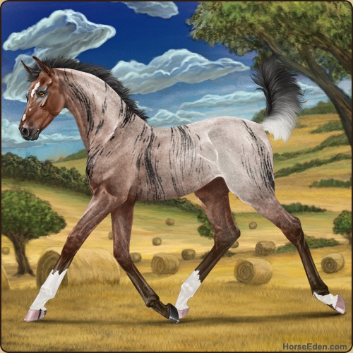 Color: Mahogany Bay Roan Rabicano Brindle