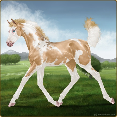 Color: Flaxen Red Dun Tobiano Splash White Sabino